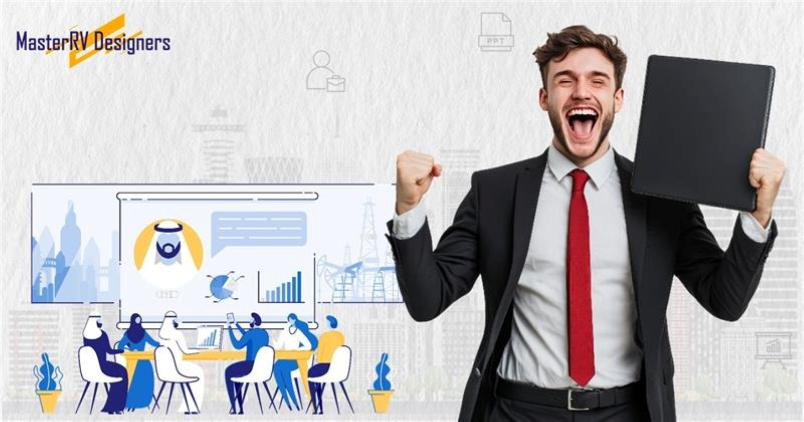 At MasterRV Designers, we’ve collaborated with both global enterprises and ambitious startups to craft presentation experiences that resonate with decision-makers. Our approach goes beyond visual polish: we ensure each template supports clarity, hierarchy, and data storytelling, allowing your slides to communicate credibility and strategic insight. With the right combination of design, customization, and narrative, even complex proposals can be delivered in a way that engages clients, inspires confidence, and drives action elevating your pitch from a set of “nice slides” to a powerful business narrative that converts.